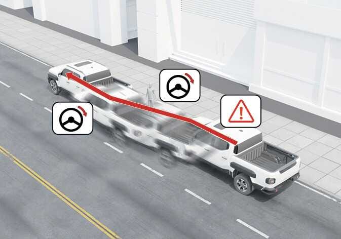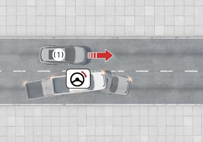 차로 내 전방의 차량, 이륜차, 보행자 및 자전거 탑승자와의 충돌 위험이 판단되고 운전자가 충돌을 피하기 위해 스티어링 휠을 조작하면 조향을 도와줍니다.
