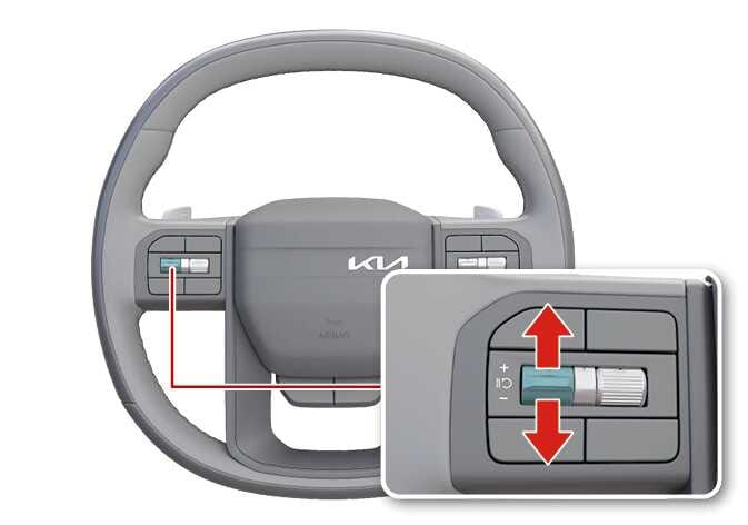 스위치를 아래로 길게 내리고 있으면 10 km/h씩 속도가 증가하거나 감소합니다.