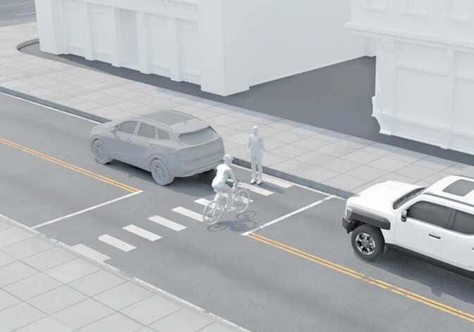 N_TK25E076자차와 전방 차량 사이로 보행자나 자전거 탑승자가 있을 경우 전방 차량 출발 알림이 정상적으로 작동하지 않을 수 있습니다.