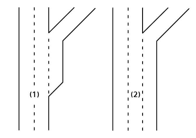 감속 시작 시점은 차량의 주행속도와 진출입로의 곡률에 따라 달라집니다. 주행속도가 높을수록 감속 시작 시점이 빨라집니다.
