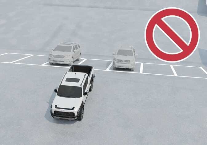 N_TK25E132트럭 등 적재함 높이가 높은 대형 차량 주변에서 원격 스마트 주차 보조를 사용하면 접촉 사고가 발생할 수 있습니다. 원격 스마트 주차 보조를 사용하지 말고 직접 주차 또는 출차하십시오.