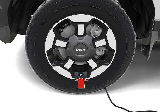 손상된 타이어의 휠 공기 주입구 캡을 풀어 실런트 용기 측 주입 호스를 휠 공기 주입구에 연결하십시오.