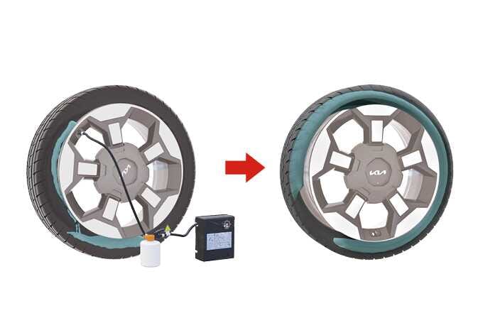 봉합제의 주입 이후에는 실런트가 고르게 분배되도록 즉시 운행 속도를 약 20 km/h 이상으로 약 7~10 km 주행하거나 약 10분 정도 운행하십시오.