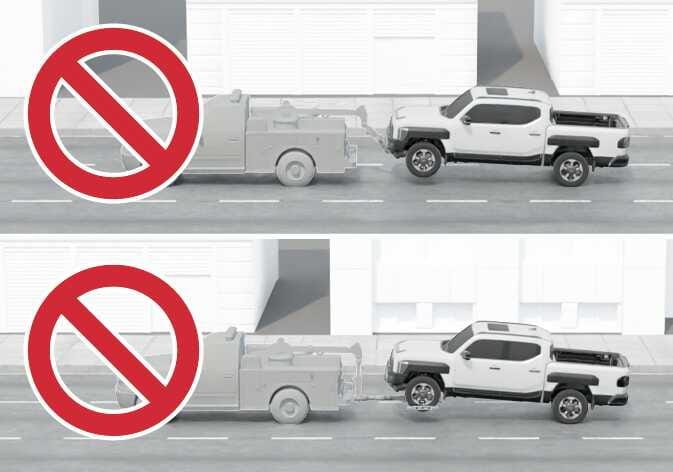 만일 두 바퀴를 통해 견인이 필요할 경우, 구동되는 바퀴를 지면에 닿지 않도록 차량을 띄운 후 견인하십시오.