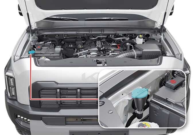 워셔액 보충 시에는 가급적 순정 워셔액 사용을 권장합니다. 추운 날씨에는 외부 온도에 따라 빙결될 수 있으므로 반드시 겨울용 워셔액을 사용하십시오.