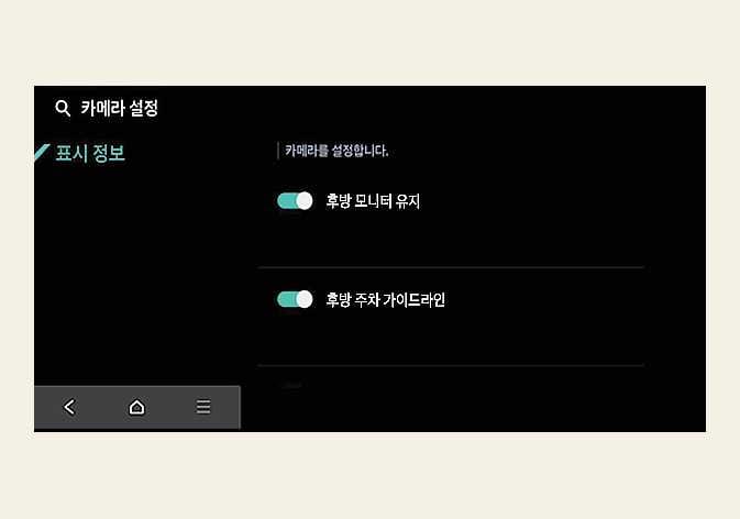 후방 모니터 유지, 후방 주차 가이드라인을 설정할 수 있습니다.