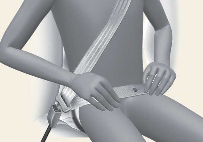 안전벨트의 골반띠 부분이 부드럽게 골반 부분을 지나도록 해야 합니다.