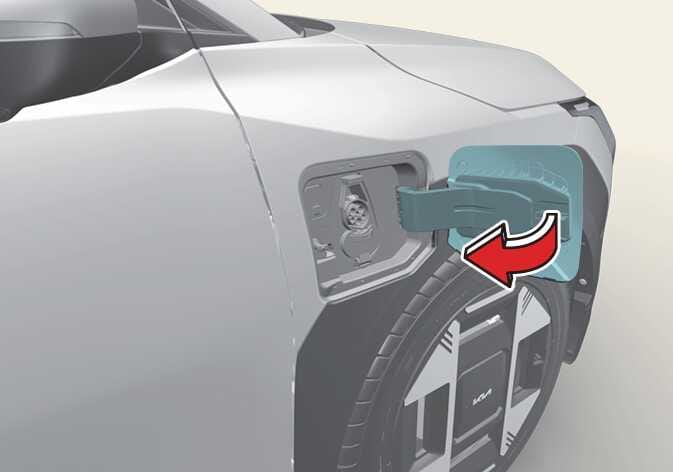 충전 도어가 열린 상태로 차량을 두고 이탈하지 마십시오. 충전 도어가 열려 있으면 차량 도어가 잠기지 않았을 수 있으며, 차량 도난의 우려가 있습니다.
