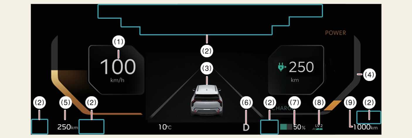 패들 시프트 조작으로 설정한 회생 제동 단계가 표시되며, 스마트 회생 시스템 작동 시 스마트 회생 시스템의 작동 상태도 표시됩니다.