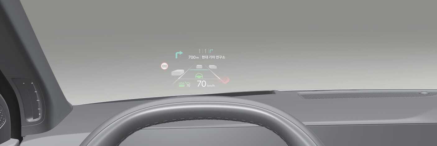 운전자 전면 유리창에 클러스터 및 내비게이션 시스템의 주요 정보를 표시하여 운전자의 시선을 분산시키지 않고 정보를 제공하는 편의 장치입니다.