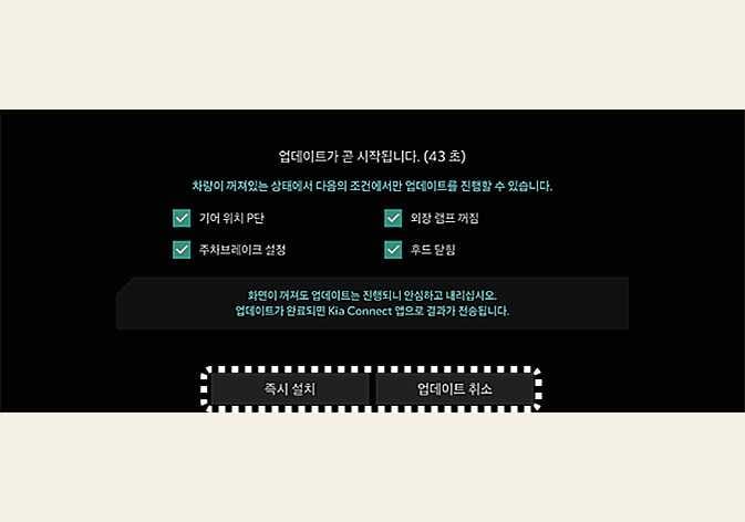 소프트웨어 업데이트 승인 화면에서 지금 설치를 누르면 차량은 업데이트를 준비합니다.