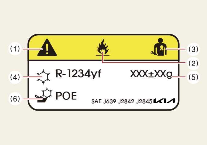 차량의 실제 에어컨 냉매 라벨은 그림과 다를 수 있습니다.