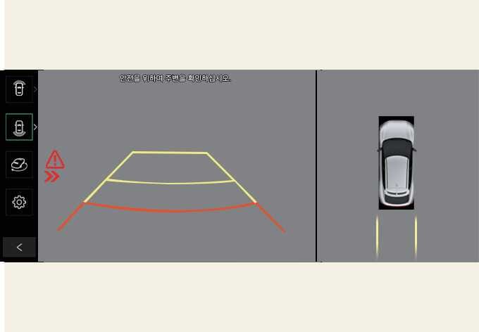 인포테인먼트 시스템 화면의 후방 영상에도 경고가 표시됩니다.