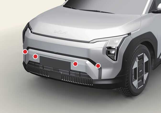 주차 거리 경고는 차량이 정차 또는 저속 주행할 때 차량의 전방/측방(사양 적용 시)/후방 초음파센서에서 일정 거리 이내에 있는 사람, 동물 또는 물체를 감지하여 표시등 또는 경고음으로 알려줍니다.