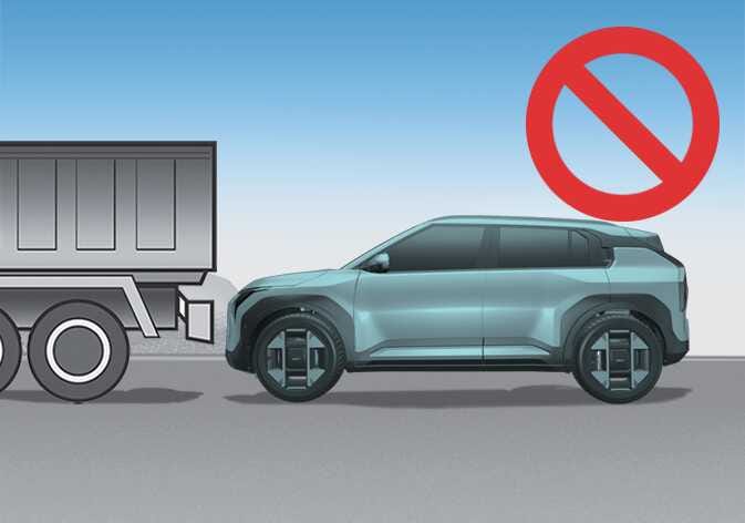 OSV054017트럭 등 적재함 높이가 높은 대형 차량 주변에서 원격 스마트 주차 보조를 사용하면 접촉 사고가 발생할 수 있습니다. 원격 스마트 주차 보조를 사용하지 말고 직접 주차 또는 출차하십시오.