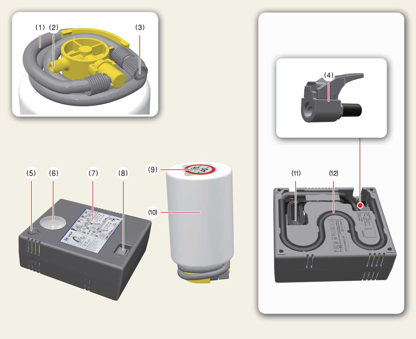 커넥터와 케이블, 연결 호스는 컴프레서에 연결되어 있습니다.