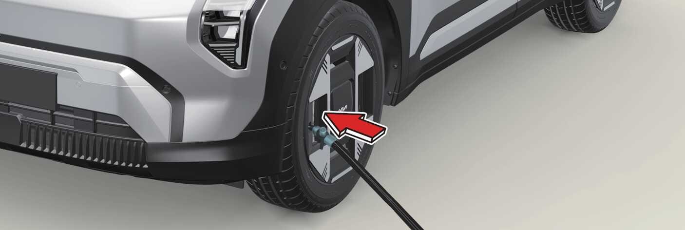타이어 공기압은 규정 공기압( 타이어 및 휠의 내용 참고)이 되어야 합니다. 그러지 않을 경우 운행을 멈추고 자사 서비스를 이용하거나 견인하십시오.