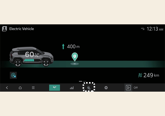 Wählen Sie das Symbol auf dem Bildschirm des Infotainment-Systems. Sie können Datum und Uhrzeit für die Aufladung der Batterie, die Temperatur der Klimaregelung und weitere Funktionen einstellen. |