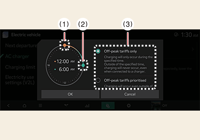 Wenn dies ausgewählt ist, beginnt der Ladevorgang nur zu den festgelegten Zeiten außerhalb der Spitzenzeiten. Wenn dies nicht ausgewählt ist, beginnt der Ladevorgang nur zu den festgelegten Zeiten.