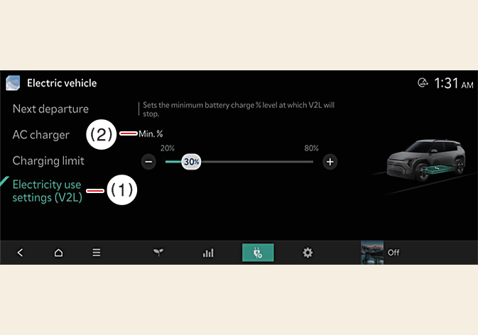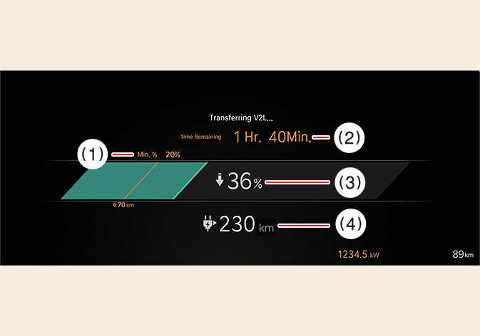 Überprüfen Sie verschiedene Informationen über V2L im infotainment-System, wenn Sie V2L verwenden.