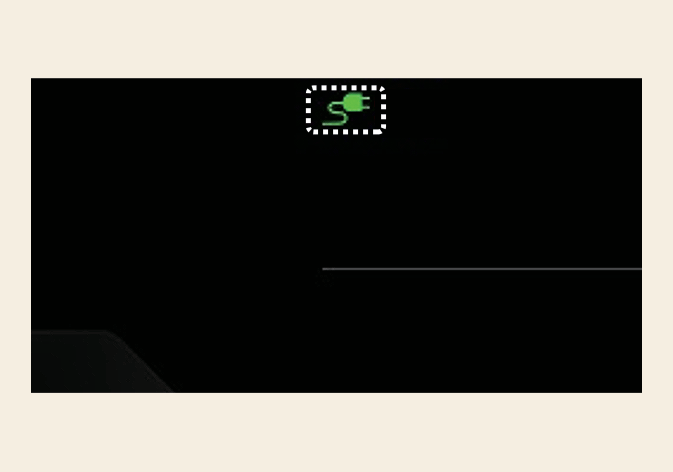 7. Überprüfen Sie, ob die Ladekontrollleuchte der Hochvoltbatterie ( ) im Kombiinstrument leuchtet. Der Ladevorgang ist nicht aktiv, wenn die Ladekontrollleuchte ( ) nicht leuchtet. Wenn der Ladestecker und die Ladebuchse nicht richtig angeschlossen sind, schließen Sie das Ladekabel zur Aufladung erneut an.