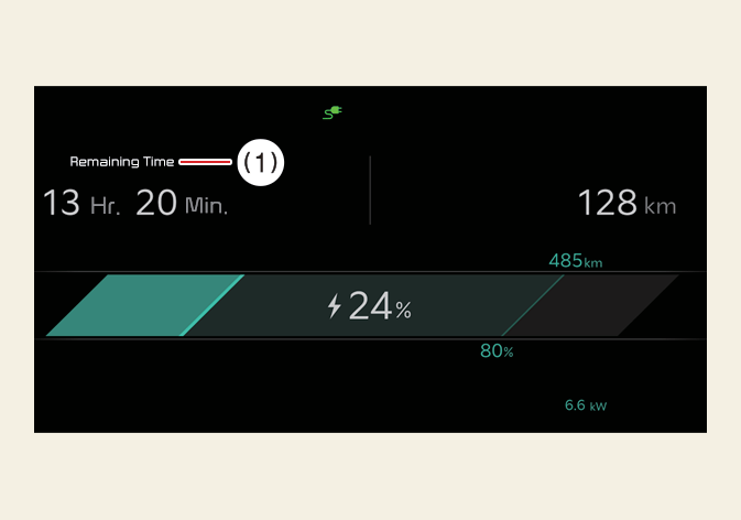 8. Nach dem Start des Ladevorgangs wird die voraussichtliche Ladezeit für 1 Minute im Kombiinstrument angezeigt.