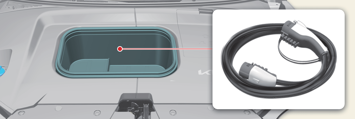 Das Wechselstrom-Ladekabel kann im vorderen Kofferraum aufbewahrt werden.