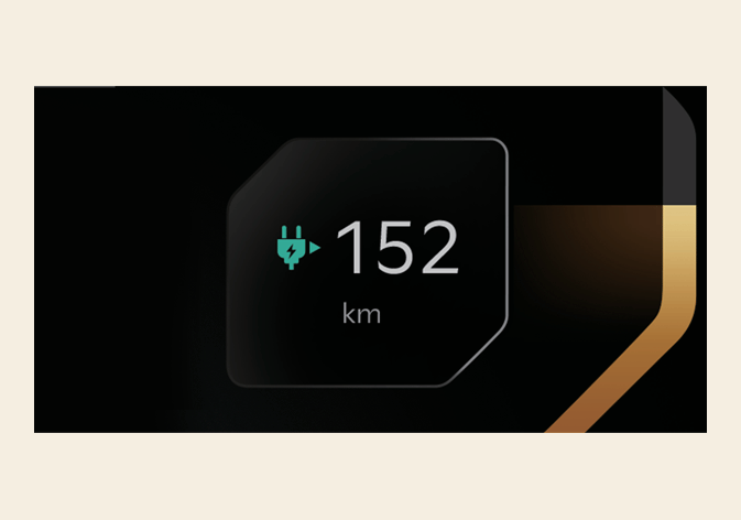Die Restreichweite wird in dem Kontrollsystem mit der integrierten Steuerung für den Fahrmodus je nach dem ausgewählten Fahrmodus anders angezeigt. Weitere Informationen finden Sie unter Integrierte Steuerung für den Fahrmodus. |