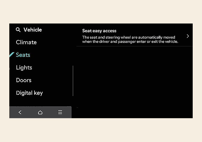 Komforteinstiegsfunktion: Der Sitz und das Lenkrad werden automatisch bewegt, wenn der Fahrer in das Fahrzeug einsteigt oder es verlässt.