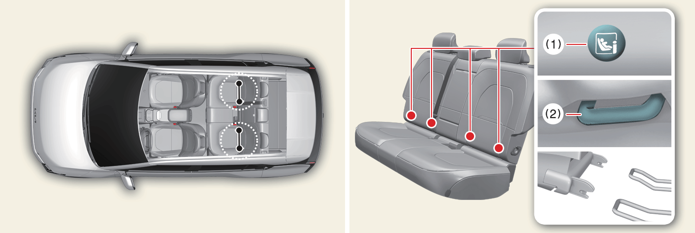 Die ISOFIX-Ankerpunkte sind Metallösen, die fest mit dem Fahrzeug verbunden sind. Jede ISOFIX-Sitzposition ist mit zwei unteren Ankerpunkten ausgestattet, die ein Kinderrückhaltesystem mit Befestigungselementen im Unterteil aufnehmen.