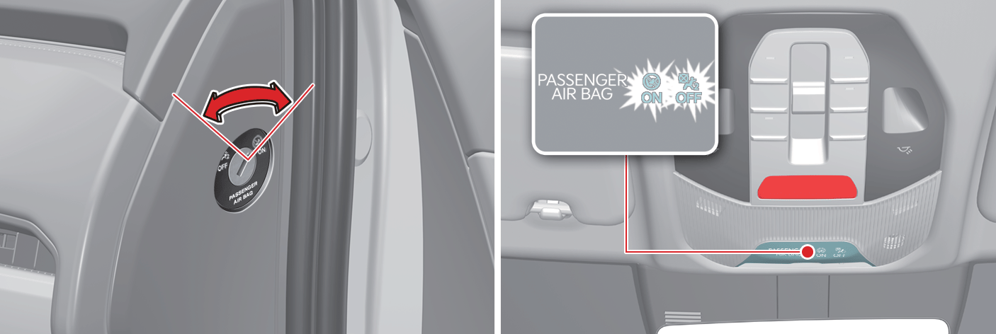 Drehen Sie den Schlüssel, um den Beifahrer-Frontairbag zu aktivieren bzw. zu deaktivieren.