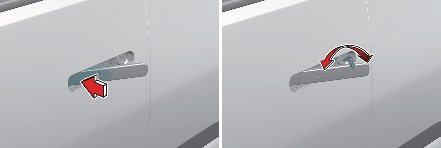 Drücken Sie auf den vorderen Teil des Türgriffs, um den hinteren Teil des Türgriffs herauszuziehen.