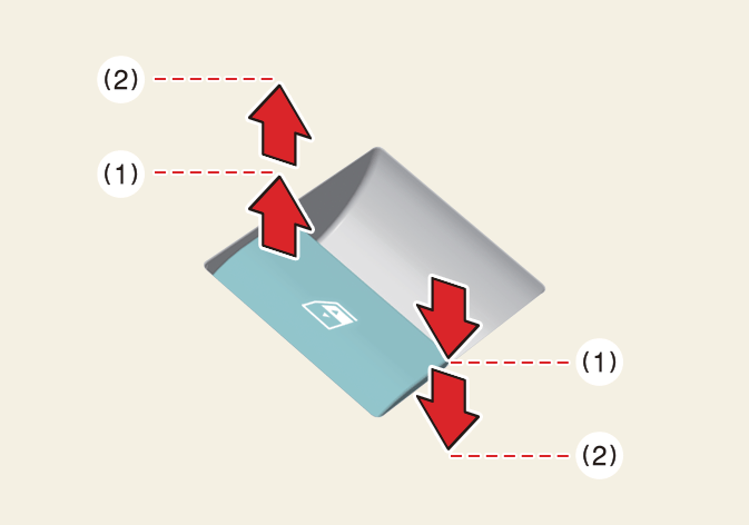 Versuchen Sie niemals einen Fensterheberschalter an der Fahrertür und den Fensterheberschalter der betreffenden Tür gleichzeitig in unterschiedliche Richtungen zu betätigen. Das betreffende Fenster bleibt in diesem Fall stehen und kann nicht mehr geöffnet oder geschlossen werden.