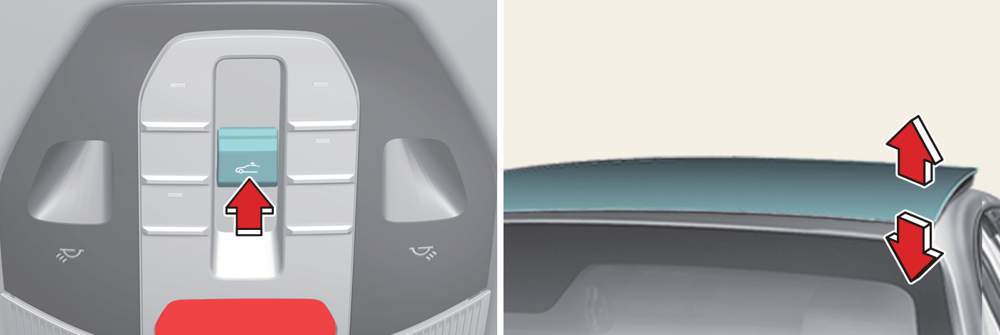 Drücken Sie den Schiebedachschalter nach oben oder nach vorne, wenn das Schiebedachglas gekippt ist: Das Schiebedachglas schließt sich automatisch.