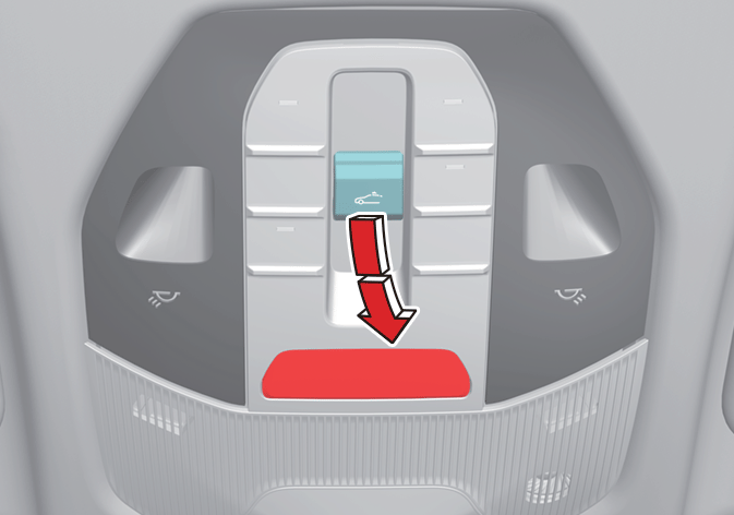 Stellen Sie sicher, dass die elektrische Sonnenblende oder das Schiebedach vollständig geschlossen ist. Wenn die elektrische Sonnenblende oder das Schiebedachglas geöffnet ist, drücken Sie den Schalter nach vorn, bis die elektrische Sonnenblende und das Schiebedach vollständig geschlossen sind.