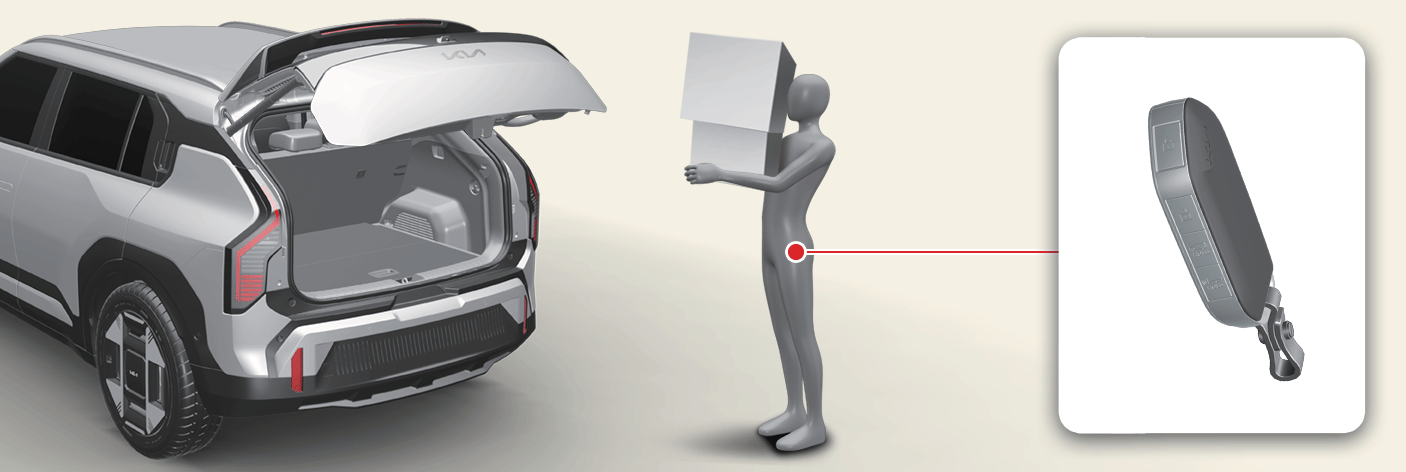 Der Smart-Key wird innerhalb eines Radius von 50–100 cm (28–40 in.) hinter dem Fahrzeug nicht erkannt