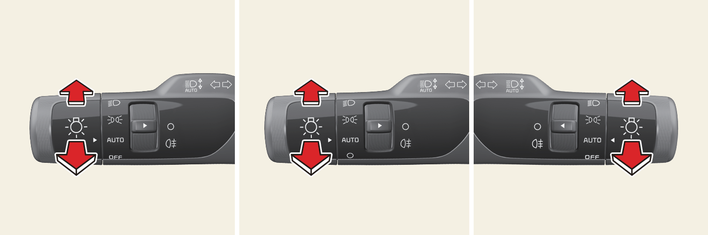 Drücken Sie den Hebel, um das Fernlicht zu verwenden, oder ziehen Sie den Hebel, um die Lichthupe zu betätigen (