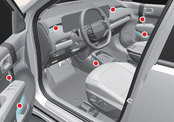 Die Innenbeleuchtung befindet sich im vorderen Armaturenbrett, in den Vordertüren und oben/unten in der Mittelkonsole.