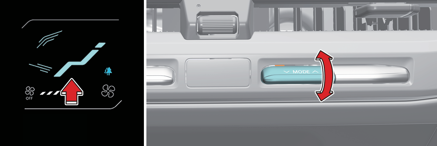 Wählen Sie die Richtung des Luftstroms im Belüftungssystem aus.