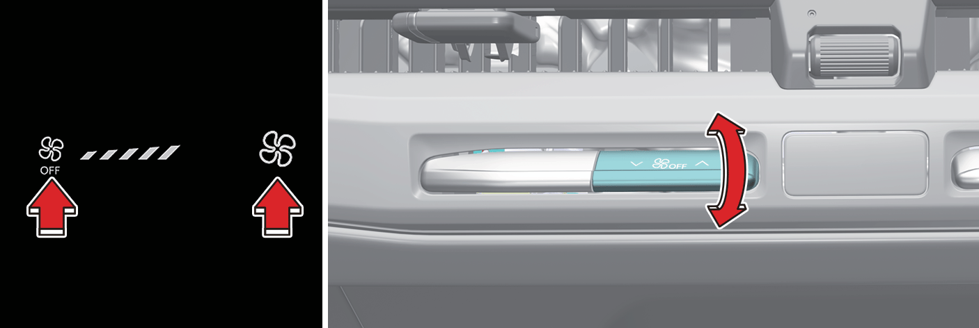 Anzeige der Klimaanlage: Drücken Sie die linke oder die rechte Taste, um die Geschwindigkeit anzupassen.