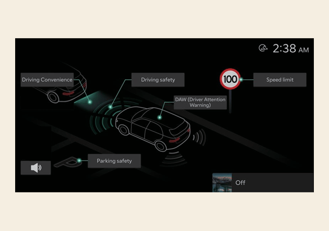 Wählen Sie auf dem Infotainment-System, um die Fahrerassistenzfunktion einzustellen.
