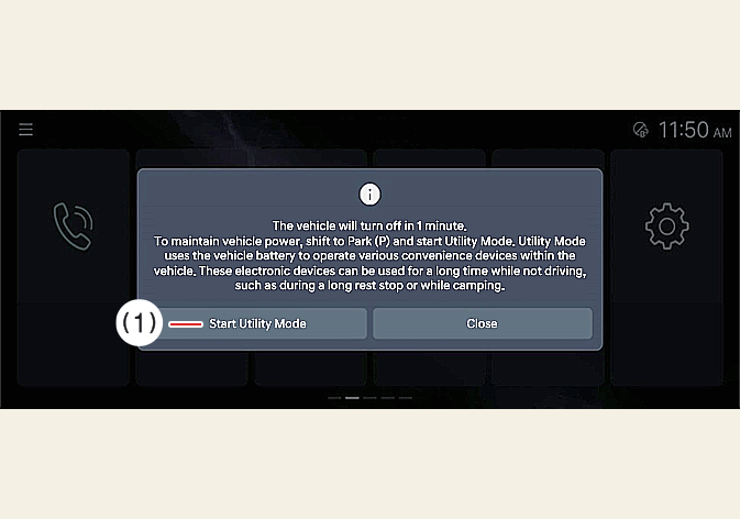Wenn das Laden der Hochspannungsbatterie und die V2L-Funktionen für den Außenbereich bei POWER ON verwendet werden, wird der Standmodus aktiviert und das Fahrzeug nicht ausgeschaltet.