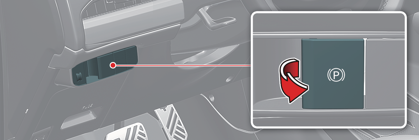 Geben Sie das Bremspedal frei und ziehen Sie den EPB-Schalter nach oben, um die Feststellbremse anzuziehen.