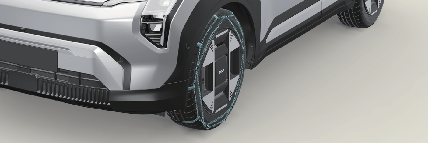 Da die Reifenflanken dünner sind, können sie durch einige Arten von Schneeketten beschädigt werden. Deshalb empfehlen wir die Verwendung von Winterreifen anstelle von Schneeketten. Ziehen Sie keine Schneeketten auf Räder mit Leichtmetallfelgen, da Leichtmetallfelgen von den Schneeketten beschädigt werden können. Wenn Schneeketten aufgezogen werden müssen, verwenden Sie feingliedrige Ketten mit einem max. Durchmesser von 12 mm (0,59 in.).