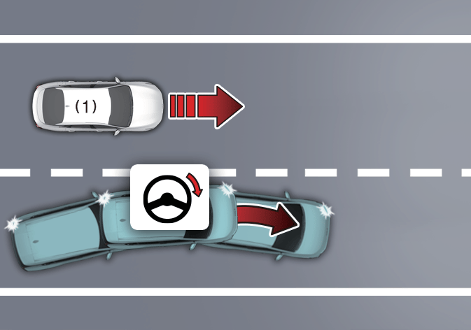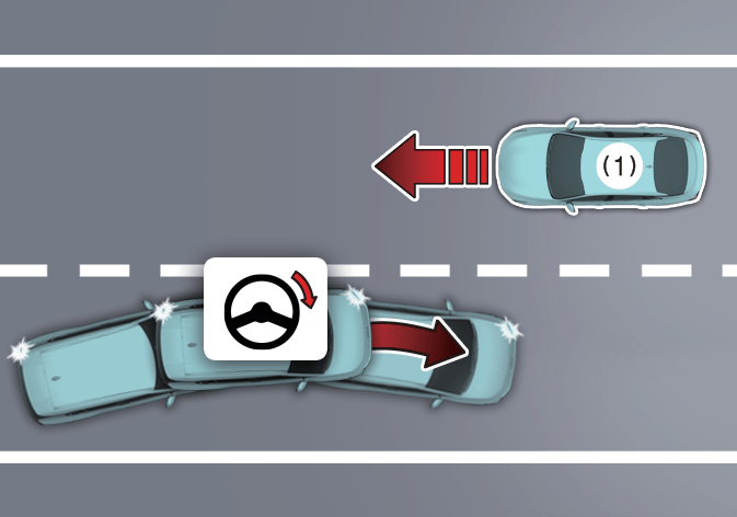 Die Funktion Fahrspurwechsel bei Gegenverkehr vermeidet eine Kollision mit einem entgegenkommenden Fahrzeug oder einem motorisierten Zweirad beim Spurwechsel durch Unterstützung des Fahrers beim Lenken. |