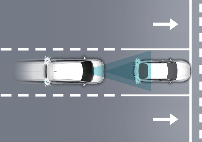 Der Frontalkollisions-Vermeidungsassistent erkennt ein Fahrzeug, ein motorisiertes Zweirad, einen Fußgänger oder einen Radfahrer vor Ihnen auf der Straße und kann Sie mit einer Warnmeldung im Kombiinstrument und einem Warnton vor einer möglichen Kollision warnen. Außerdem kann der Frontalkollisions-Vermeidungsassistent beim Abbremsen Ihres Fahrzeugs helfen, um die Kollisionsgeschwindigkeit zu verringern beziehungsweise einen Zusammenstoß zu vermeiden. Der Frontalkollisions-Vermeidungsassistent erkennt vorausfahrende und benachbarte Fahrspuren auch bei hohen Geschwindigkeiten. Wenn der Fahrer bei diesen Geschwindigkeiten die Spur wechselt, führt das Fahrzeug eine Notbremsung durch, um eine Kollision abzuschwächen oder zu vermeiden. (ausstattungsabhängig) |