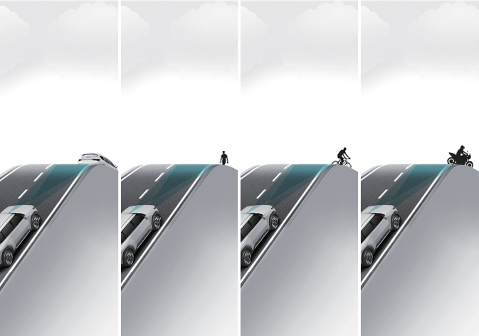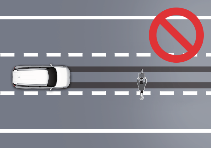 Das vorausfahrende Fahrzeug oder motorisierte Zweirad wechselt plötzlich die Spur oder reduziert plötzlich die Geschwindigkeit.