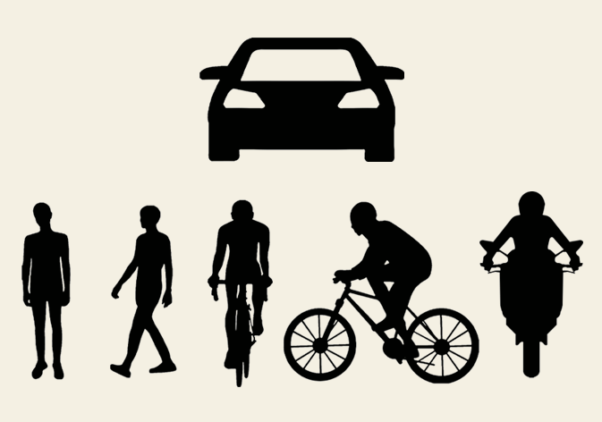 Die Fußgänger bzw. Radfahrer bewegen sich seitlich. |