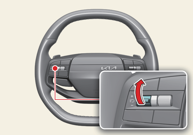 ) und lassen Sie sie sofort los. Die eingestellte Geschwindigkeit erhöht sich in Schritten von 1 km/h (1 mph). Wenn die Geschwindigkeitseinheit im Kombiinstrument auf „mph“ eingestellt ist, erhöht sie sich in Vielfachen von 5.