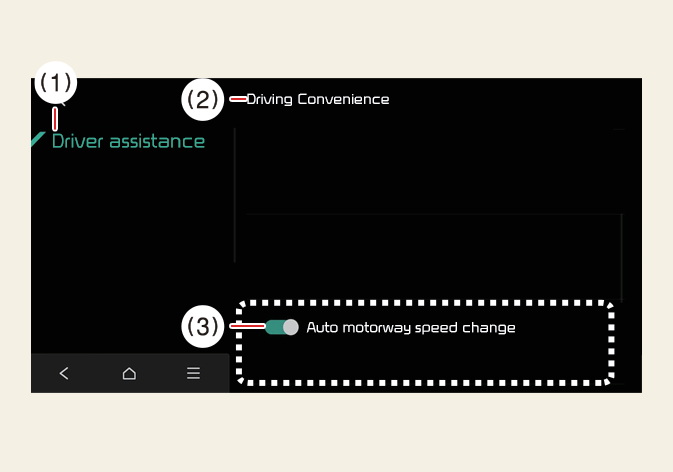 Wenn ein Problem mit der navigationsgestützten intelligenten Tempomatsteuerung vorliegt, kann die Funktion nicht über das Einstellungsmenü eingestellt werden.